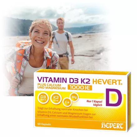 Vitamin D3 K2 Hevert plus Calcium und Magnesium 1000 IE