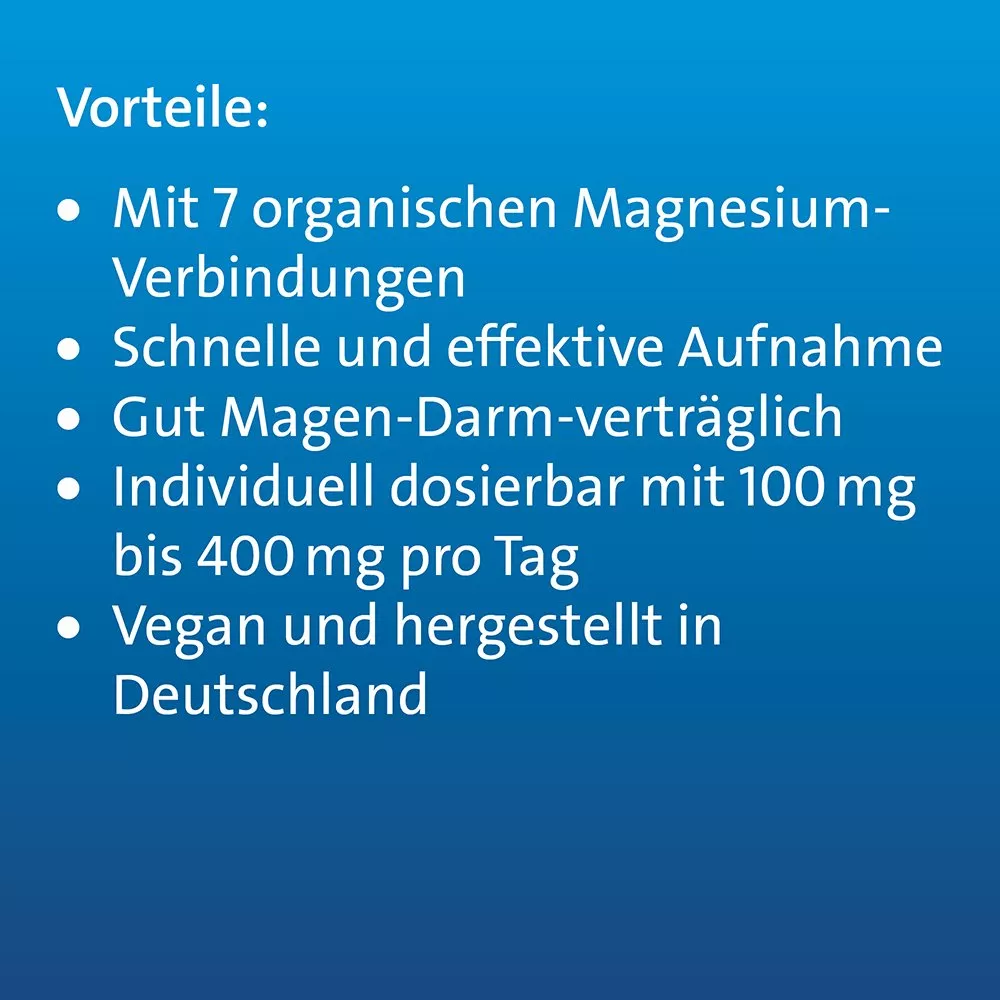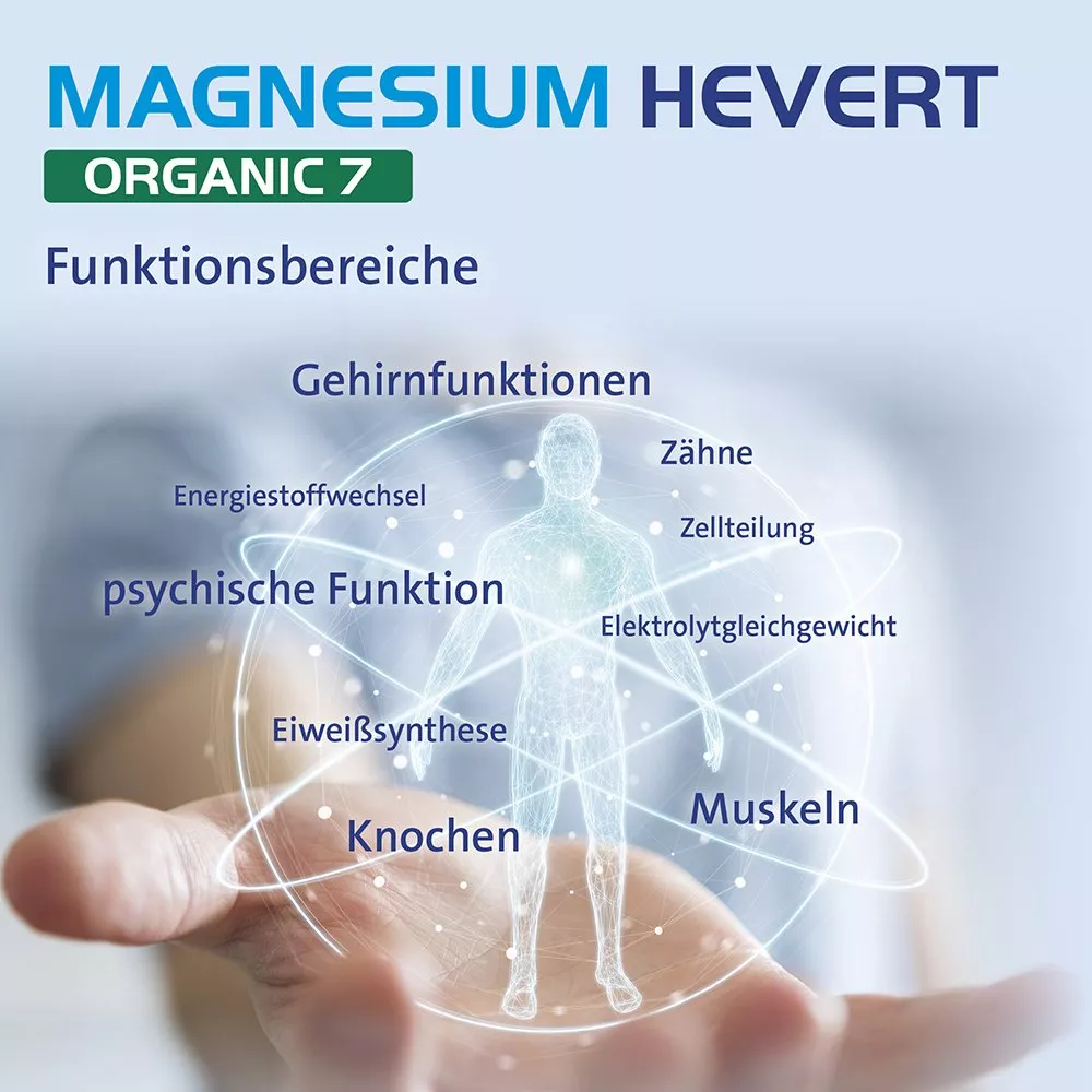 Magnesium Hevert Organic 7 es un complejo único compuesto por 7 compuestos orgánicos de magnesio para una absorción rápida y efectiva.