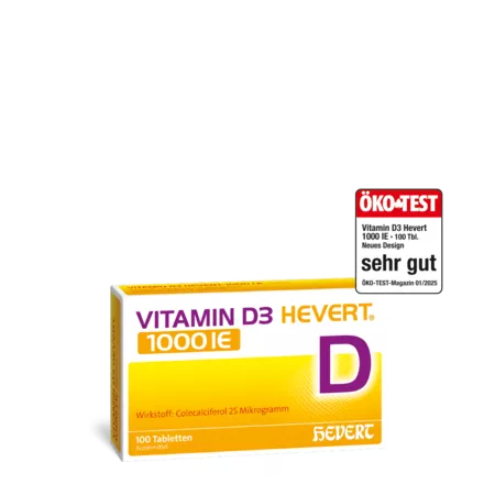 La ingesta regular de comprimidos de vitamina D3 de Hevert previene los síntomas de carencia y sus consecuencias. Junto con una dieta rica en calcio, la vitamina D3 Hevert garantiza un crecimiento óseo sano y previene una estructura ósea porosa y quebradiza. La vitamina D3 Hevert se tolera bien y también es adecuada para lactantes y niños pequeños. Sólo 1 comprimido al día puede prevenir una carencia de vitamina D.