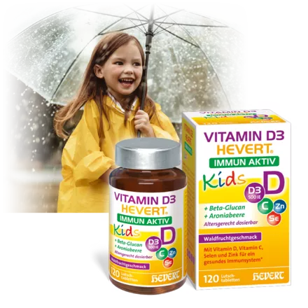 Vitamin D3 Hevert Immun Aktiv Kids – combinación poderosa para el sistema inmunológico de su hijo.