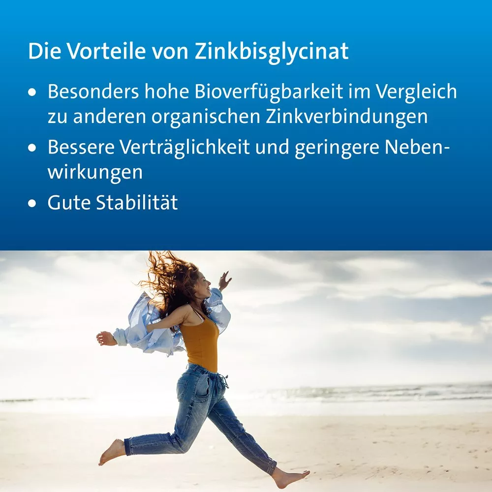 - Zinc orgánico altamente dosificado y muy biodisponible en forma de bisglicinato de zinc.