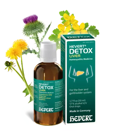 Hevert Detox Liver helps to restore the digestive function of the liver-gallbladder system and so to support the detoxification metabolism of the organism.