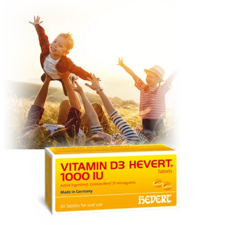 Taking Vitamin D3 Hevert 1000 IU regularly prevents deficiency and its consequences. Together with a diet high in calcium, Vitamin D3 Hevert 1000 IU ensures healthy bone growth and prevents porous, brittle bone structure. Vitamin D3 Hevert 1000 IU is well tolerated and is also suitable for babies and toddlers. Just 1 tablet a day can prevent vitamin D deficiency.